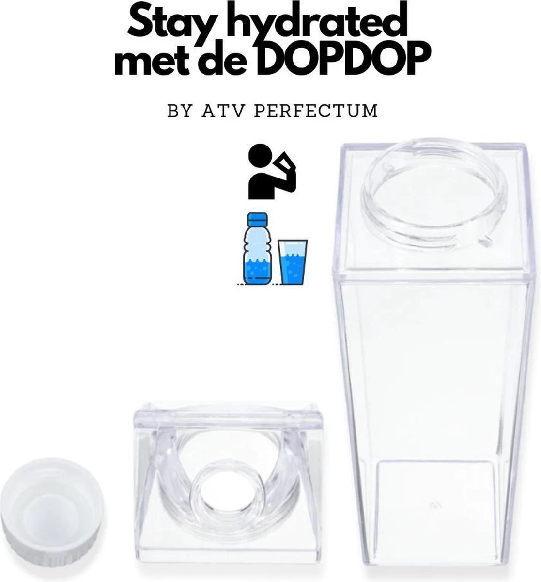 De DOPDOP by ATV PERFECTUM is het ideale flesje voor kraanwater, sap, melk en andere soorten drinken. De DOPDOP staat voor Duurzaam, handig en stijlvol! Wegwerpflesjes zijn verledentijd. Geen onnodige plastic afval meer! Je kunt de bovenkant gemakkelijk losdraaien om hem schoon te maken of te vullen. Ideaal om drinken mee te nemen naar je werk, school of andere gelegenheden.