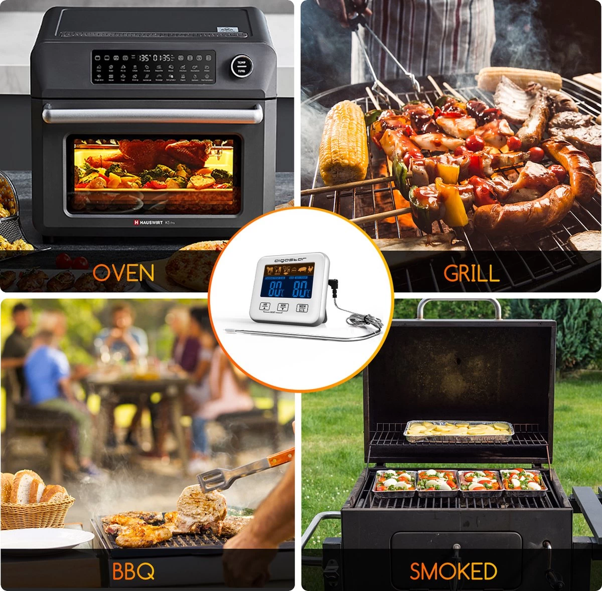 De grillthermometer levert binnen 3 seconden nauwkeurige temperatuurmetingen met een nauwkeurigheid van ±1°C (1.8°F). De sonde met 100cm roestvrij staalkabel kan in om het even welke oven of grill, perfect voor ovens, grills, rookovens, enz.