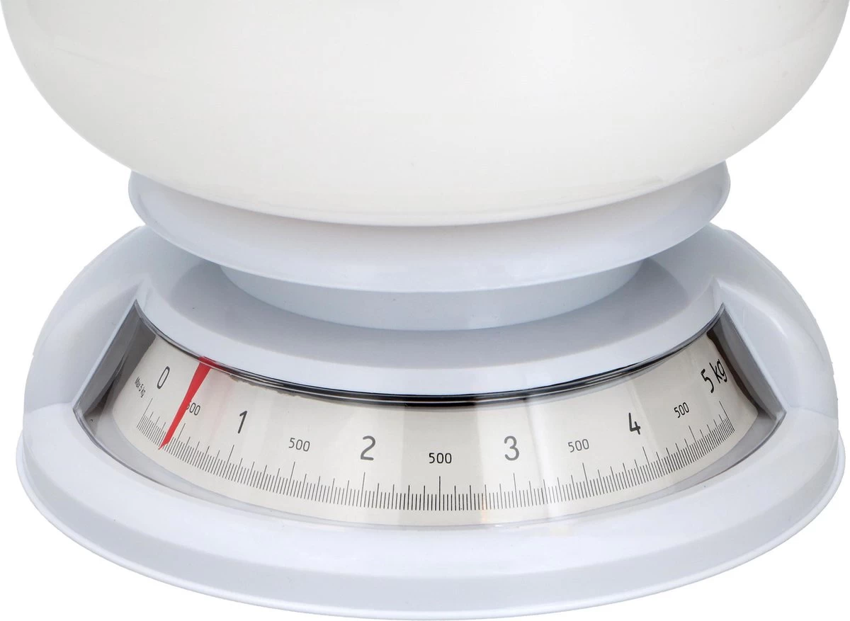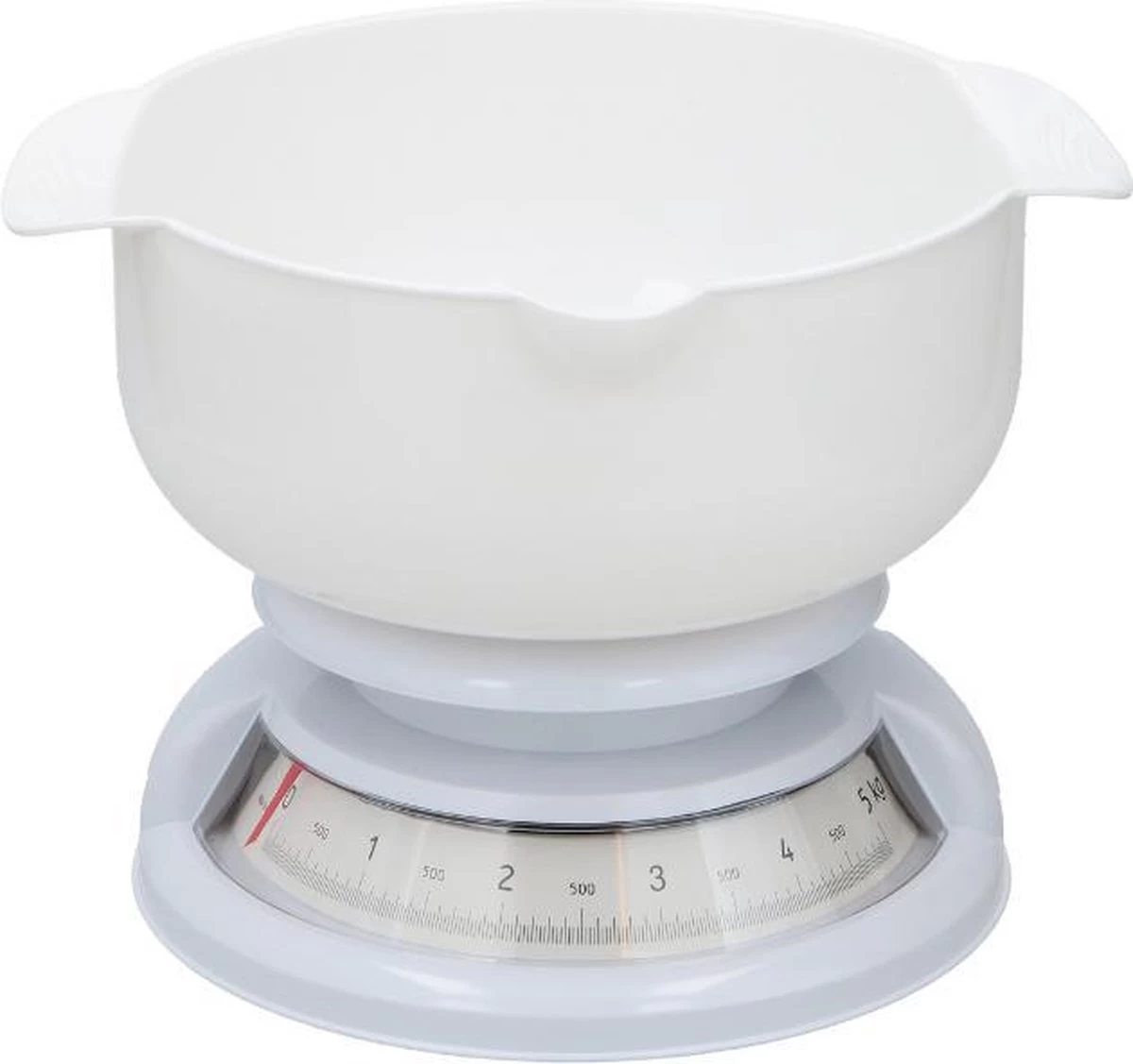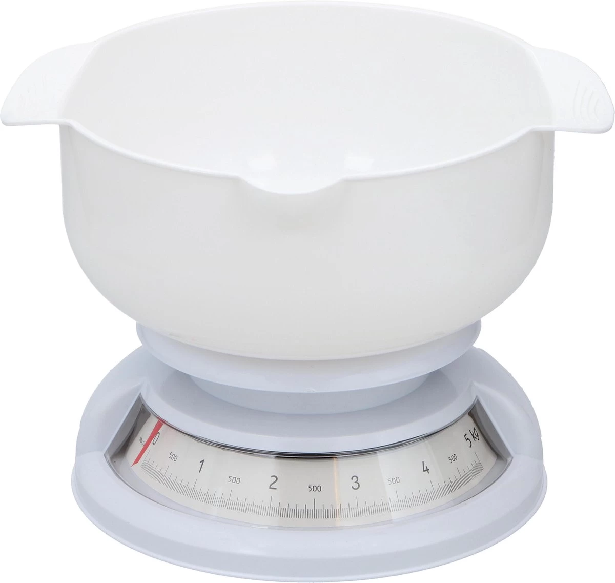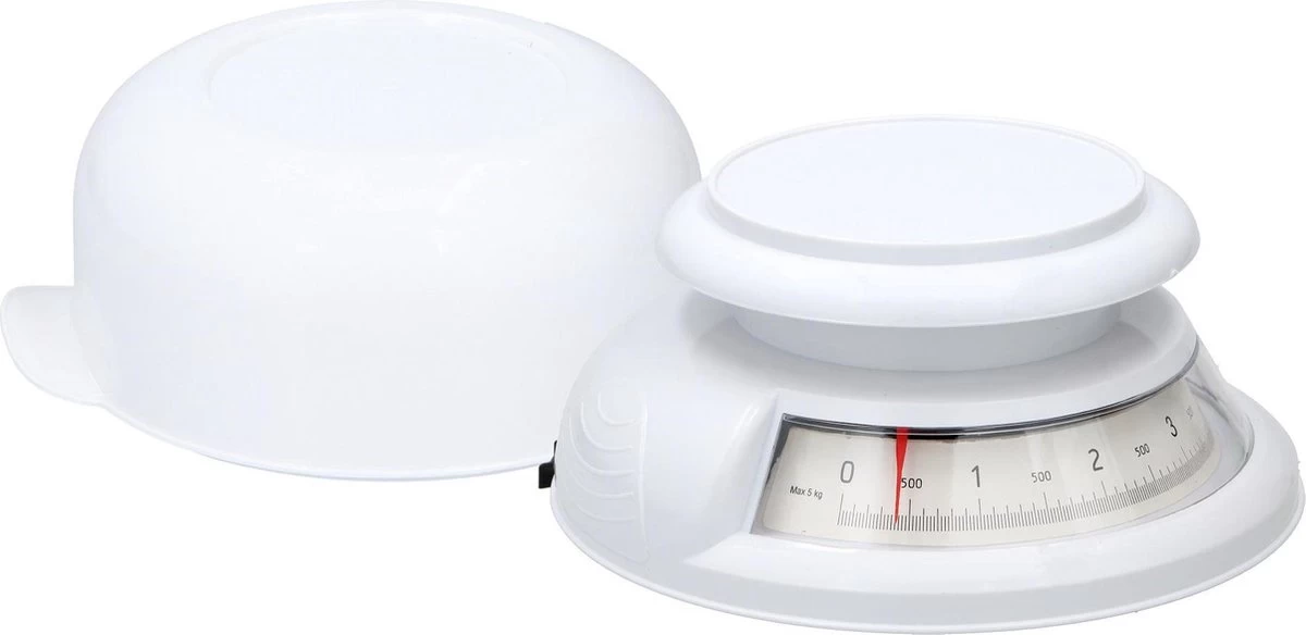 Deze keukenweegschaal van Alpina kan ingrediënten wegen tot 5 kilo. Het is een analoge weegschaal met meter. Er zit een witte kom bij zodat je gemakkelijk bloem, meel en suiker kunt afwegen. Je kunt de kom ook gebruiken om de ingrediënten in te mengen, mixen of kloppen.