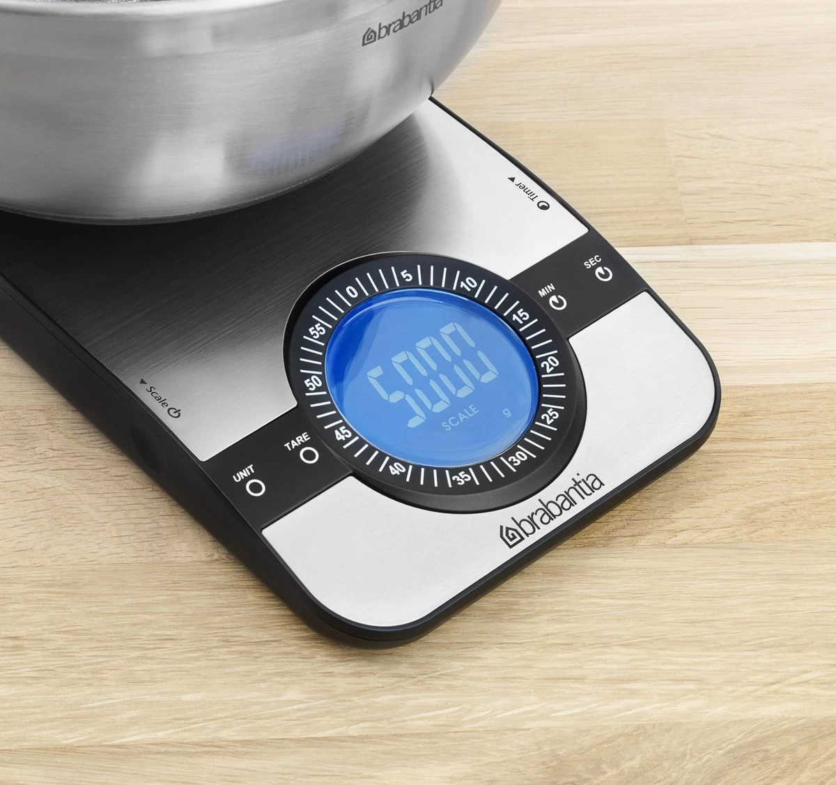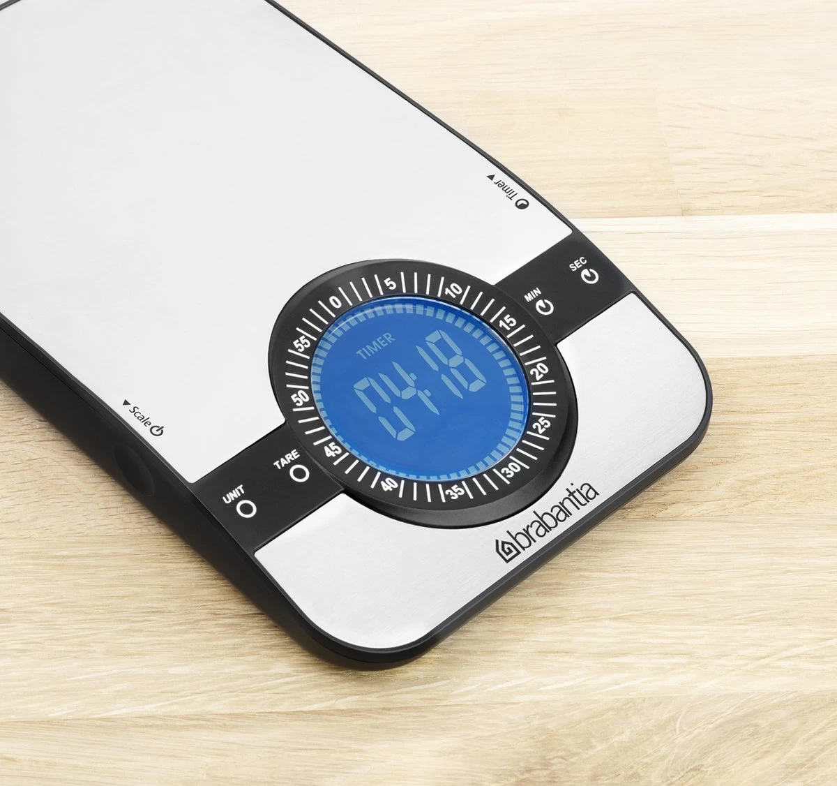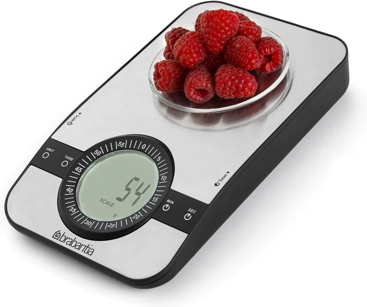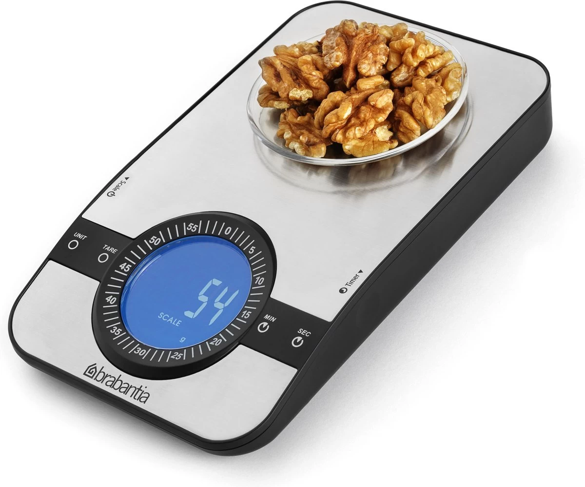 Brabantia Profile Keukenweegschaal – met kookwekker – Matt Steel