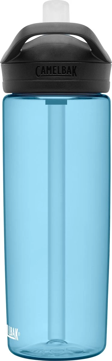 De drinkfles CamelBak Eddy+ heeft een ideale drinktuit die zich opent door er zachtjes op te bijten. De nieuwe drinktuit van de Eddy+ geeft 25% meer per slok dan de voorgaande modellen. De siliconen tuit is verbonden aan een rietje waardoor de vloeistof omhoogkomt als je zuigt. Je hoeft de fles dus niet te kantelen als je drinkt. Handig in de auto of op de fiets, zo houd je je blik gericht op het verkeer en dat is wel zo veilig. De drinktuit sluit geheel af zodra je er niet meer op bijt. CamelBak Eddy is verkrijgbaar in de maten 600, 750 en 1000 ml. Als de fles omvalt is dat geen probleem, de vloeistof wordt door de drinktuit goed tegengehouden. De dop is 100% lekvrij. Je kunt de drinkfles dus met een gerust hart op je bureau zetten, naast je computer.