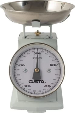 Wanneer retro helemaal jouw ding is, hoort deze Gusta weegschaal echt op je aanrecht te staan. Hiermee wordt bakken nog leuker. Deze keukenweegschaal is gemaakt van roestvrijstaal en heeft een afmeting van 18x13x15cm.