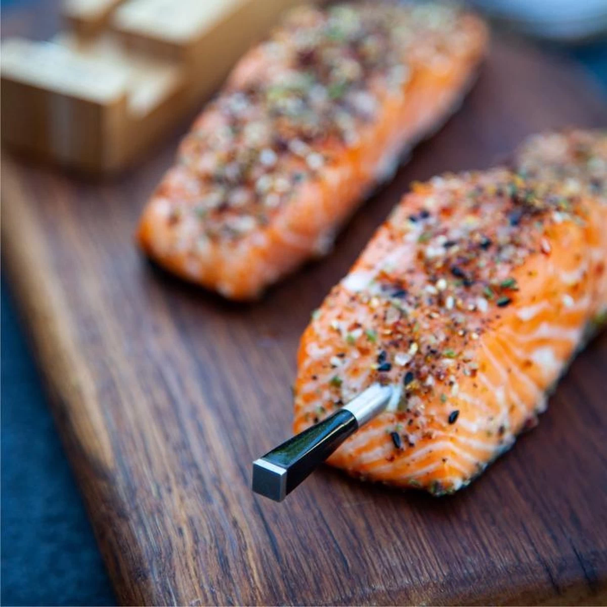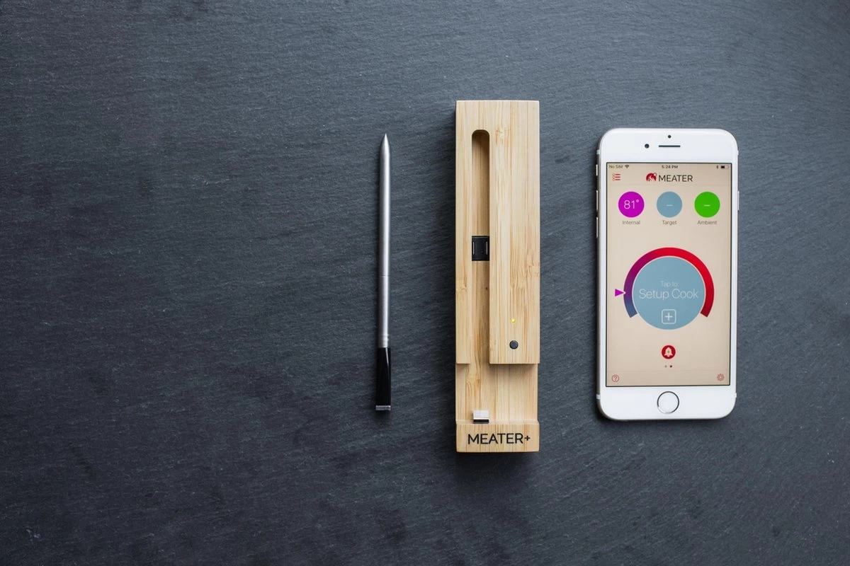 De Meater is ’s werelds beste volledig draadloze slimme vleesthermometer. De probe beschikt over 2 verschillende sensoren en meet zowel de kern temperatuur van uw gerecht als de omgeving temperatuur van uw BBQ, Grill, Smoker, Pan of Oven. Met behulp van de gratis App monitort u eenvoudig draadloos beide temperaturen tot wel een afstand van 50 meter. De Meater laat u de resterende bereidingstijd zien en stuurt u een alert wanneer het gerecht de gewenste kern temperatuur heeft behaald.
