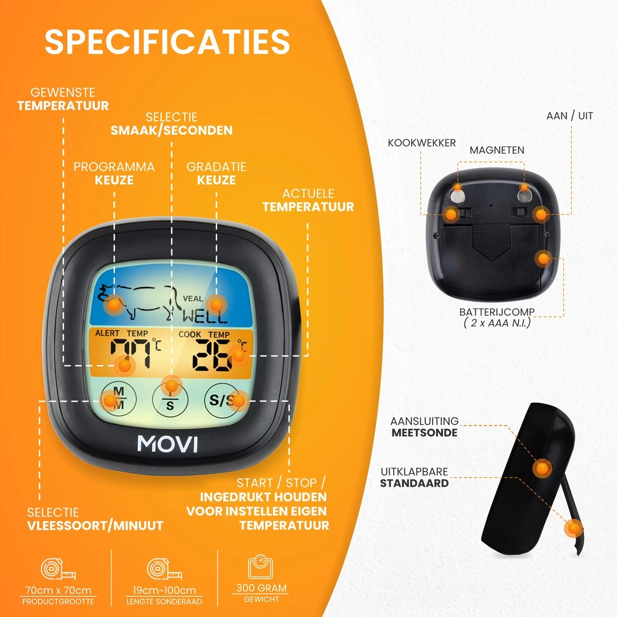 De MINI + vleesthermometer is jouw assistent in de keuken. Het kan ook worden gebruikt om de temperatuur van vloeistoffen als suiker of babyvoeding op te meten. Daarnaast kan deze eenvoudig worden ingezet als kookwekker en is daarom een onmisbare item voor iedere chef en is ideaal voor de BBQ, oven, smoker, grill en Kamado.