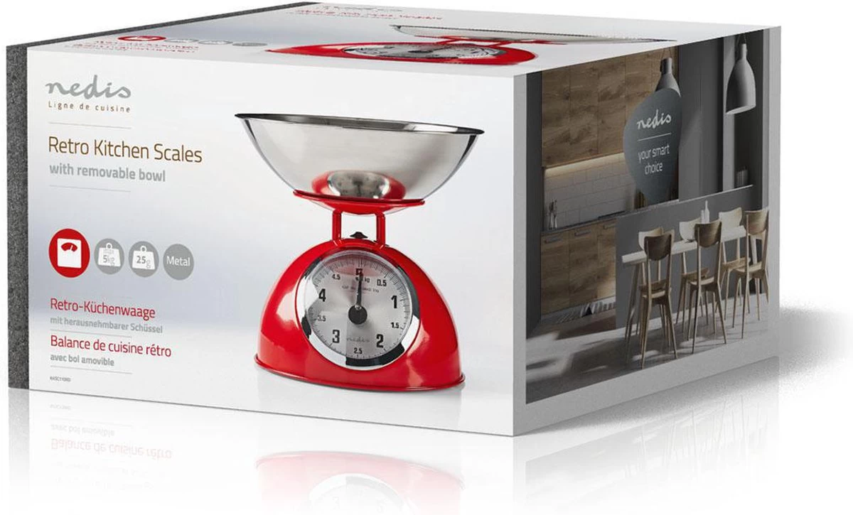 Nedis Keukenweegschaal – Analoog – Roestvrij Staal – Verwijderbare Kom – Rood