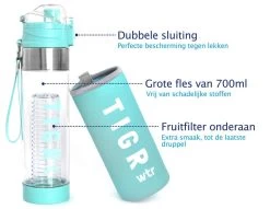 TIGR The Athlete – Drinkfles – Waterfles Met Fruit Filter – 1000ml – Groen – Met Mengbal Voor Shakes