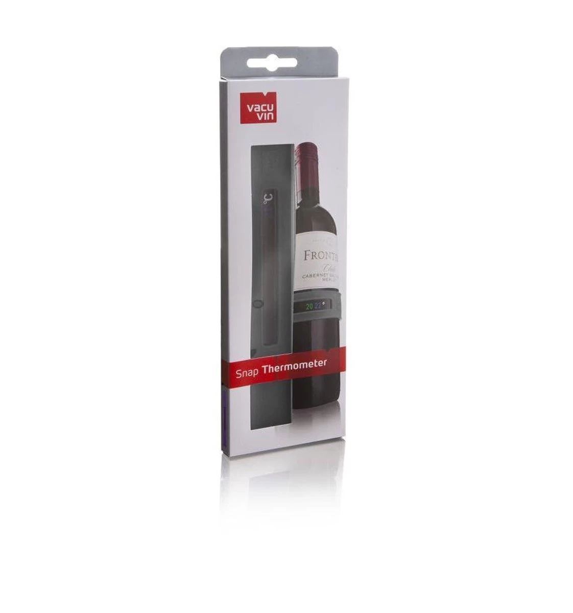Wijnthermometer – Snap – Grijs van het merk Vacuvin. Deze thermometer is eenvoudig in gebruik doordat deze om de fles heen klemt, ook de temperatuur is heel duidelijk af te lezen. Op deze manier kunt u uw wijn altijd op de perfecte temperatuur drinken!